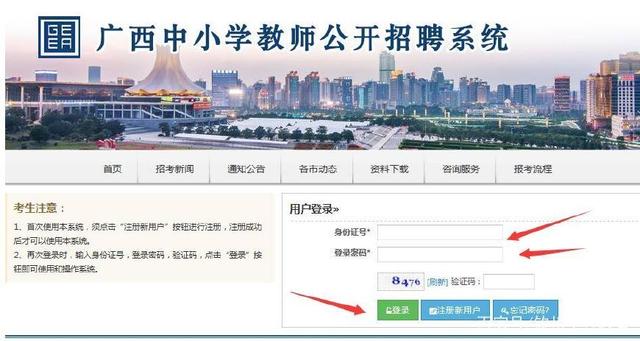 首先進入廣西中小學教師招聘報名入口,進行注冊