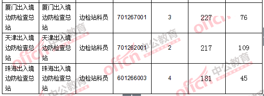 招錄人數(shù)較多的出入境邊防檢查系統(tǒng)經(jīng)過(guò)9天的報(bào)名后,目前通過(guò)審核人數(shù)為10646,平均競(jìng)爭(zhēng)比高達(dá)40:1,略高于總體競(jìng)爭(zhēng)比,所招錄職位“脫零”,所有職位均有考生“垂青”,國(guó)家對(duì)基層職位的政策傾斜在報(bào)考中明顯地體現(xiàn)出來(lái)。