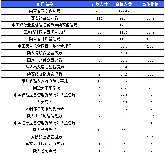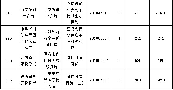 報(bào)名人數(shù)較多的職位主要集中在陜西省國家稅務(wù)局、中國民用航空局西北地區(qū)管理局、西安鐵路公安局等部門,具體信息如下: