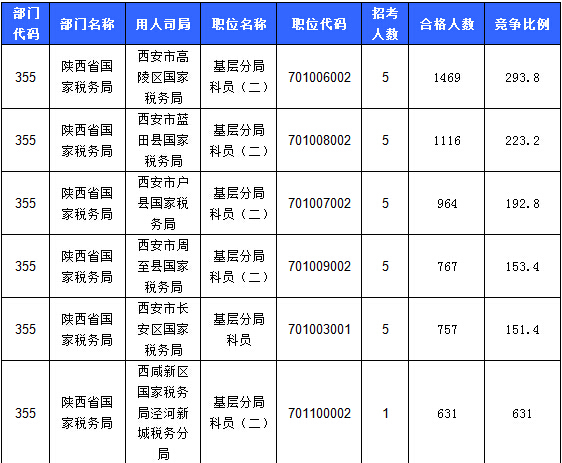 截止到24日18時(shí),競爭最激烈的職位為陜西省國家稅務(wù)局西咸新區(qū)涇河新城稅務(wù)分局基層分局科員(二)一職,該職位招錄1人,通過人數(shù)為631人,競爭比高達(dá)631:1!
