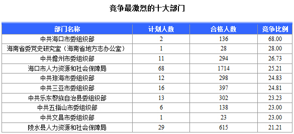 報(bào)名通過(guò)審核人數(shù)前十的職位主要集中在各大人力資源局具體信息如下: