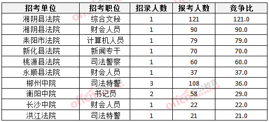 2016年湖南法院報(bào)名人數(shù)為3217人,最熱職位競(jìng)爭(zhēng)比例為121:1(3月26日)