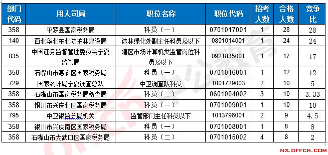 2017國考寧夏地區(qū)報名合格人數(shù)前十的職位