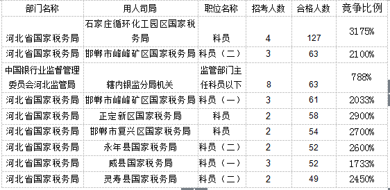 報(bào)名通過(guò)審核人數(shù)前十的職位主要集中在河北省國(guó)家稅務(wù)局、國(guó)家統(tǒng)計(jì)局河北調(diào)查總隊(duì)、中央辦公廳等部門,具體信息如下: