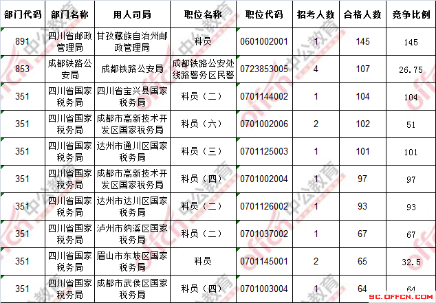 首日報名通過審核人數(shù)前十的職位主要集四川省國家稅務(wù)局等部門,具體信息如下: