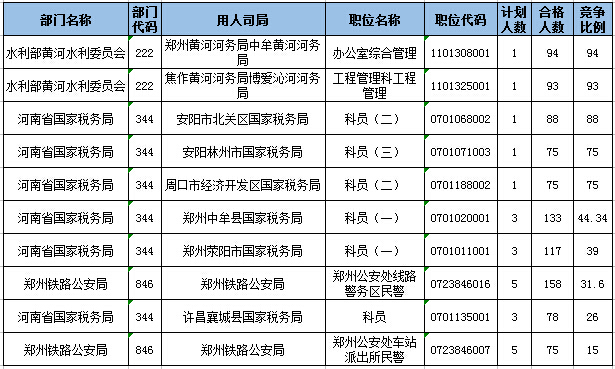 報(bào)名通過(guò)審核人數(shù)排名前列的職位主要集中在鄭州鐵路公安局、河南省國(guó)家稅務(wù)局,水利部黃河水利委員會(huì),具體信息如下: