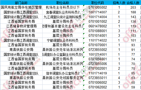 報(bào)名通過(guò)審核人數(shù)前十的職位主要集中在江西省國(guó)家稅務(wù)局、國(guó)家統(tǒng)計(jì)局江西調(diào)查總隊(duì)具體信息如下: