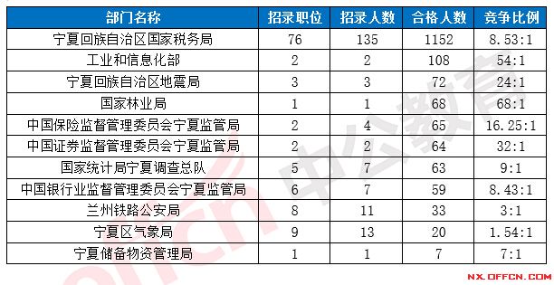 2017國考寧夏地區(qū)各部門報考情況