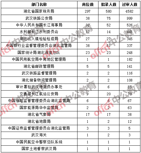 【截至19日8時】2017國考報名湖北8394人通過審核,72個職位無人通過審核