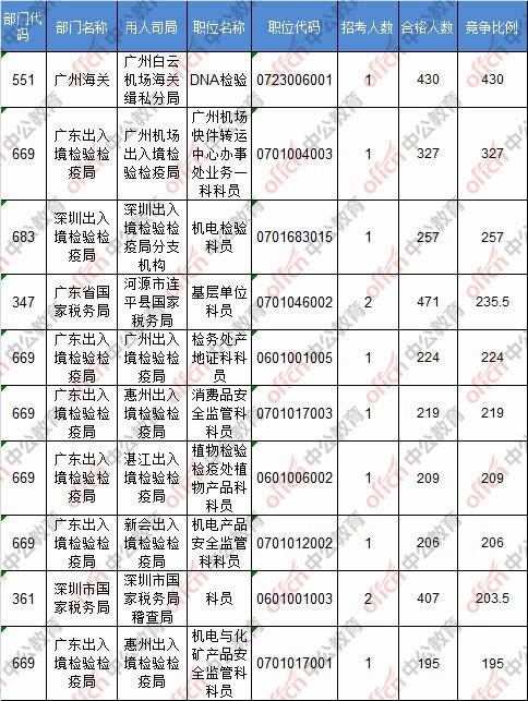 截止到19日16時(shí),競(jìng)爭(zhēng)比例的職位為廣州海關(guān)廣州白云機(jī)場(chǎng)海關(guān)緝私分局DNA檢驗(yàn)一職,招錄1人,截止到19日8時(shí)通過(guò)人數(shù)為430人。