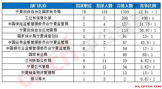 2017國考寧夏地區(qū)各部門報(bào)考情況