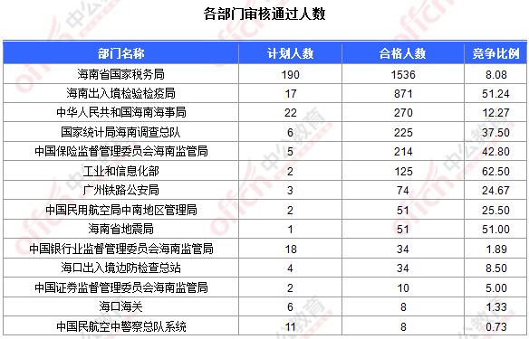 【截至20日8時】2017國考報名海南3511人過審 海關(guān)繼續(xù)“遭冷”