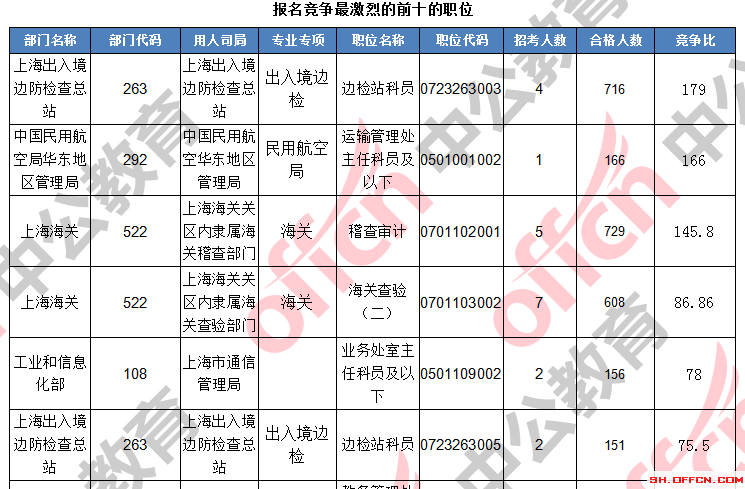 截止19日16時(shí)2017國(guó)考上海崗位無(wú)人報(bào)考匯總