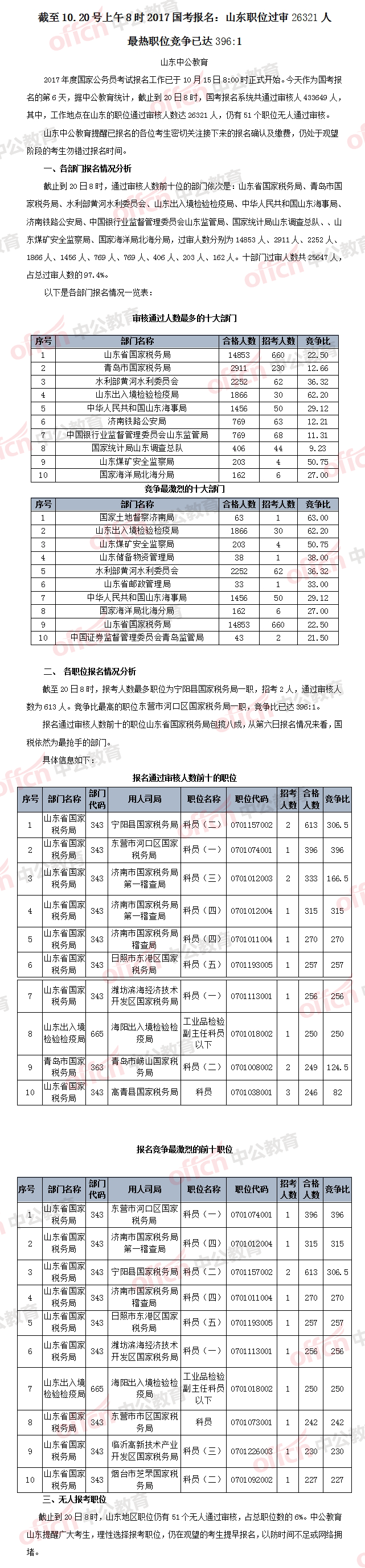 相關(guān)鏈接>>>2017國家公務(wù)員考試報名人數(shù)統(tǒng)計(山東地區(qū))【截至10月20日8時】