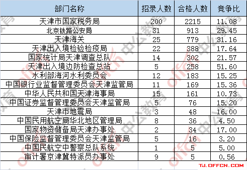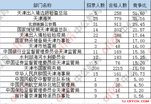 為幫助廣大考生更清晰的了解今日?qǐng)?bào)名情況,天津中公網(wǎng)校整理了審核通過(guò)人數(shù)前五位的部門(mén)以及競(jìng)爭(zhēng)比例最激烈的五大部門(mén),供廣大考生參考:
