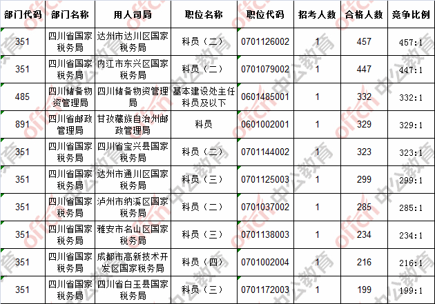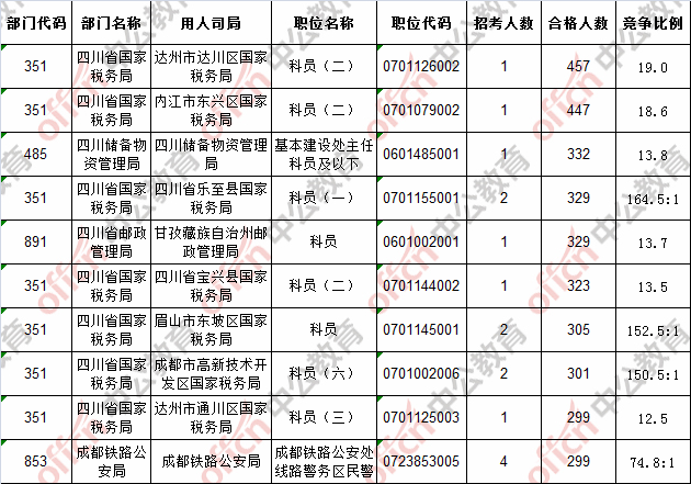 首日報名通過審核人數(shù)前十的職位主要集四川省國家稅務(wù)局等部門,具體信息如下: