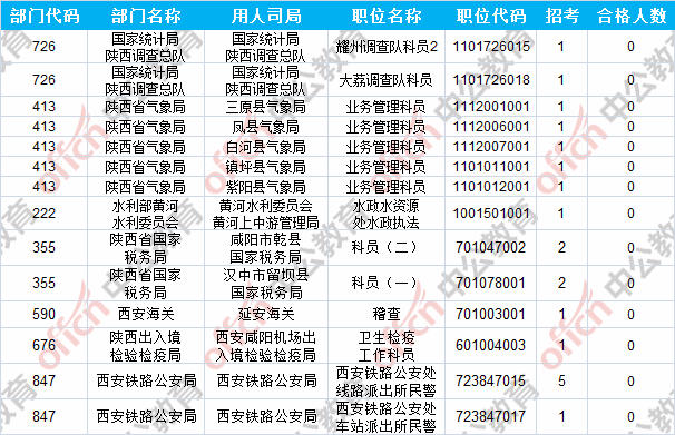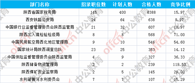 報(bào)名通過審核人數(shù)前十的職位主要集中在陜西出入境檢驗(yàn)檢疫局、陜西省國家稅務(wù)局、中國民用航空局西北地區(qū)管理局等部門,具體信息如下: