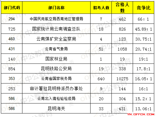 為幫助廣大考生更清晰的了解今日報名情況,云南中公網校整理了審核通過人數部門排名,供廣大考生參考: