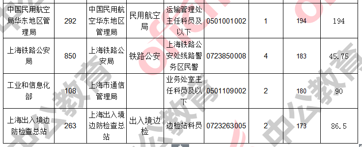報(bào)名通過(guò)審核人數(shù)前十的職位主要集中在上海出上海海關(guān)、上海出入境邊防檢查總站、中國(guó)民用航空局華東地區(qū)管理局,具體信息如下: