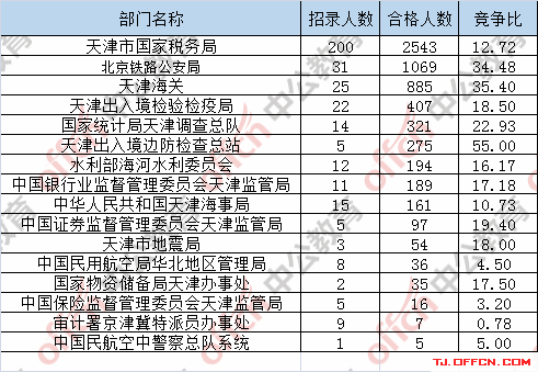 為幫助廣大考生更清晰的了解今日?qǐng)?bào)名情況,天津中公 網(wǎng)校整理了審核通過人數(shù)前五位的部門以及競爭比例最激烈的五大部門,供廣大考生參考: