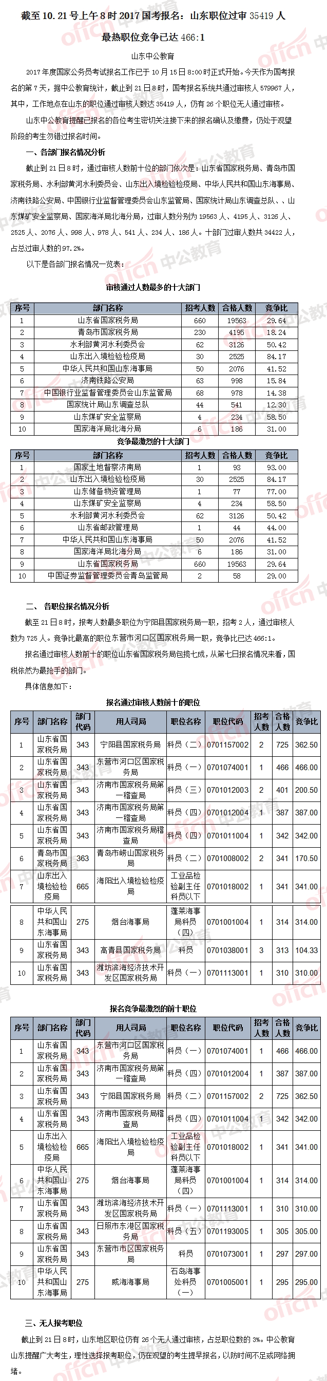 【截至21日8時(shí)】2017國(guó)考報(bào)名山東職位過(guò)審35419人 最熱職位競(jìng)爭(zhēng)已達(dá)466:1