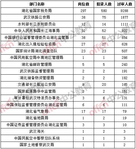 截止到10月21日8時(shí),湖北地區(qū)各部門通過審核人數(shù)如下: