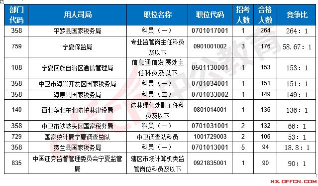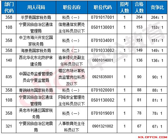 2017國考寧夏地區(qū)各部門報(bào)考情況