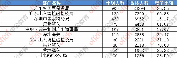為幫助廣大考生更清晰的了解今日?qǐng)?bào)名情況,廣東中公網(wǎng)校整理了審核通過(guò)人數(shù)前十位的部門(mén)以及競(jìng)爭(zhēng)比例最激烈的十大部門(mén),供廣大考生參考: