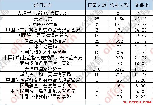 為幫助廣大考生更清晰的了解今日報名情況,天津中公教育整理了審核通過人數(shù)前五位的部門以及競爭比例最激烈的五大部門,供廣大考生參考: