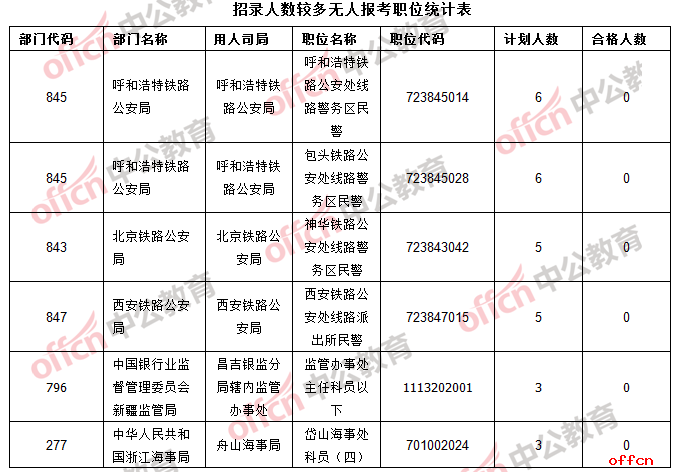 截止到22日8時,仍有546個崗位報考人數(shù)還未破零,占3.5%,依然呈現(xiàn)出冰火兩重天的奇特景象。中央黨群機(jī)關(guān)參照公務(wù)員法管理人民團(tuán)體和群眾團(tuán)體和中央黨群機(jī)關(guān)參照公務(wù)員法管理事業(yè)單位這兩個系統(tǒng)所有職位均已破零。國家公務(wù)員局官方發(fā)布《關(guān)于報考人數(shù)較少職位情況的特別提醒》呼吁考生結(jié)合職位特點和自身條件,理性選擇報考職位。為了讓考生關(guān)注那些在報名中“遇冷”的職位,國家公務(wù)員局還匯總整理了目前無人通過資格審查職位和資格審查合格人數(shù)比例較低職位(小于3:1)的相關(guān)信息,并在官網(wǎng)上公布,中公教育專家在此將幾個招錄人數(shù)較多的幾個“遇冷”職位進(jìn)行統(tǒng)計,希望考生們“垂青”。