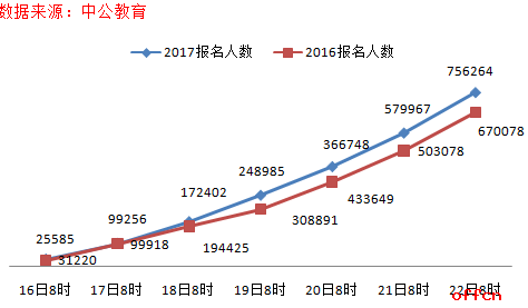 【截至22日8時】2017國考報名人數(shù)統(tǒng)計: 75萬余人過審,近28人爭1職位