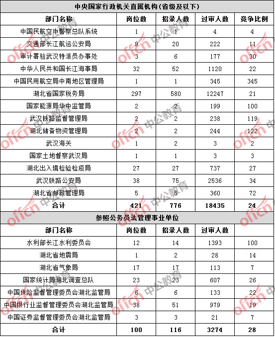 【截至22日8時】2017國考湖北地區(qū)21709人過審 最熱職位554:1
