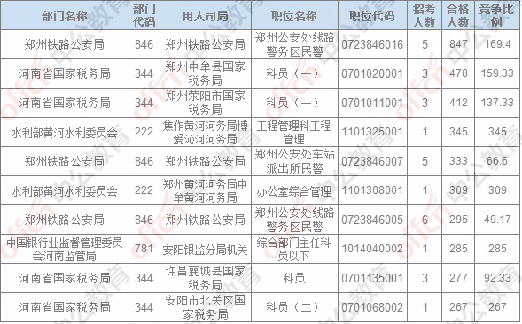 報(bào)名通過審核人數(shù)排名前列的職位主要集中在鄭州鐵路公安局、河南省國家稅務(wù)局,水利部黃河水利委員會(huì),具體信息如下: