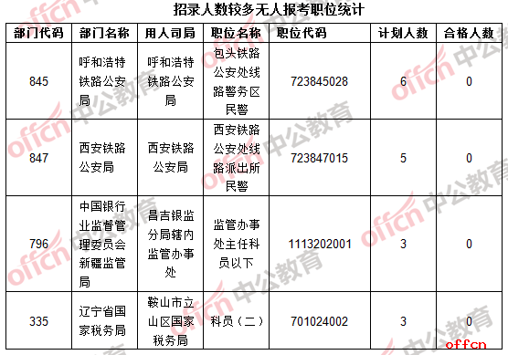 國考招錄面向全國各地,涵蓋各部門、各系統(tǒng),考生出于地域、門檻等因素的考慮會在選擇職位時有所偏向,因此,冷熱不均的局面就產(chǎn)生了。目前仍有438個職位報考人數(shù)還未破零,占總職位數(shù)的2.8%,中央黨群機關以及中央國家行政機關(本級)這兩個系統(tǒng)目前都僅剩1個職位無人報考,分別為國家外國專家局經(jīng)濟技術專家司項目處主任科員及以下(職位代碼407002001),中共中央對外聯(lián)絡部二局蒙古語翻譯(職位代碼102004002),希望符合條件的考生重點考慮以上兩個職位。