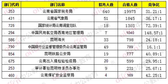 為幫助廣大考生更清晰地了解今日報名情況,云南中公網(wǎng)校整理了審核通過人數(shù)部門排名,供廣大考生參考: