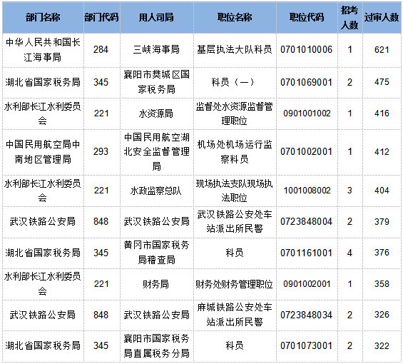 報(bào)名通過(guò)審核人數(shù)前十職位