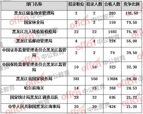 為幫助廣大考生更清晰的了解今日?qǐng)?bào)名情況,黑龍江中公網(wǎng)校整理了審核通過(guò)人數(shù)前六位的部門(mén)以及競(jìng)爭(zhēng)比例最激烈的十大部門(mén),供廣大考生參考: