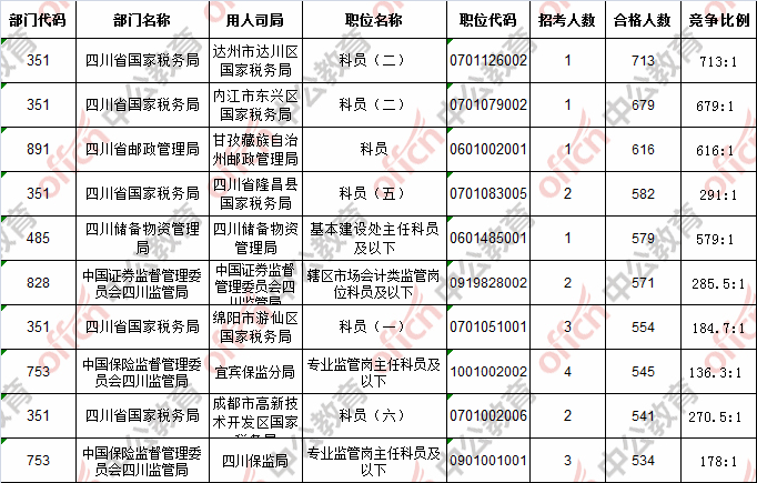 首日?qǐng)?bào)名通過(guò)審核人數(shù)前十的職位主要集四川省國(guó)家稅務(wù)局等部門(mén),具體信息如下: