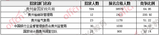 截至報名結(jié)束,貴州招錄部門中各大部門均有人員報考。