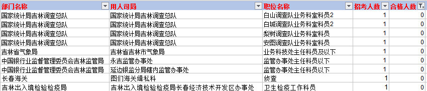 截止到24日17:30,工作地點(diǎn)在吉林的職位共有9個(gè)崗位無(wú)人報(bào)考。下面是無(wú)人報(bào)考職位一覽表。