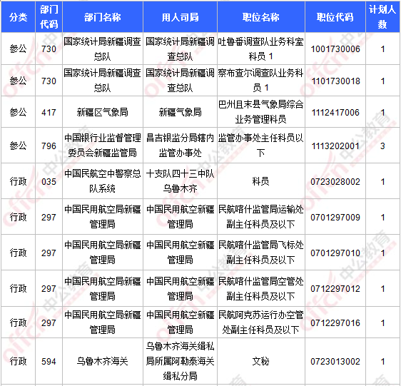 報名通過審核人數(shù)前十的職位主要集中在新疆維吾爾自治區(qū)國家稅務(wù)局、新疆儲備物資管理局、烏魯木齊鐵路公安局部門,具體信息如下: