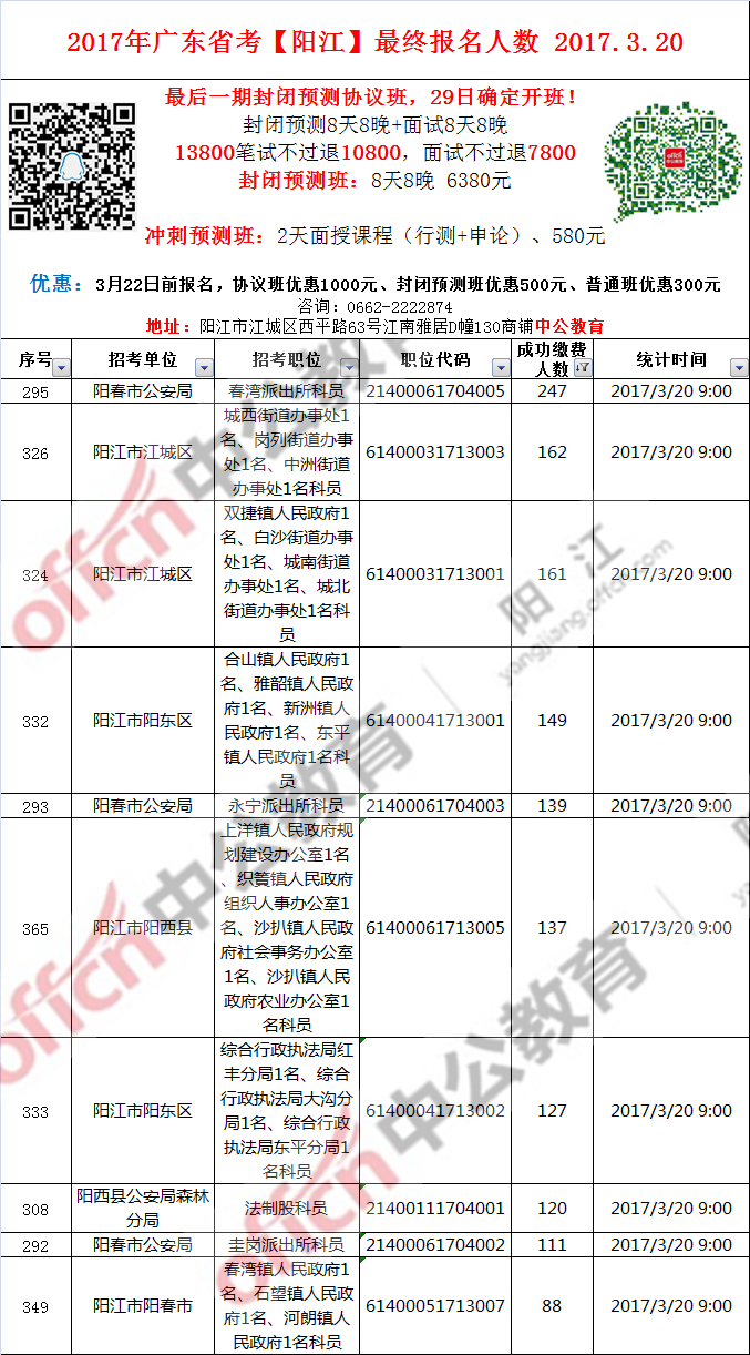 附件:2017廣東公務(wù)員考試(陽江考區(qū))職位報名人數(shù)統(tǒng)計(截止3月20日9時).xlsx