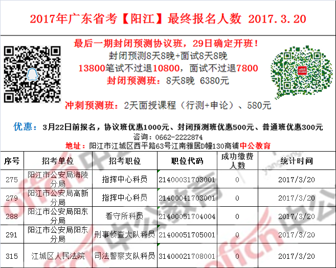 【陽江考區(qū)】2017年廣東省考最終報名人數(shù)