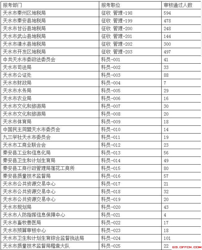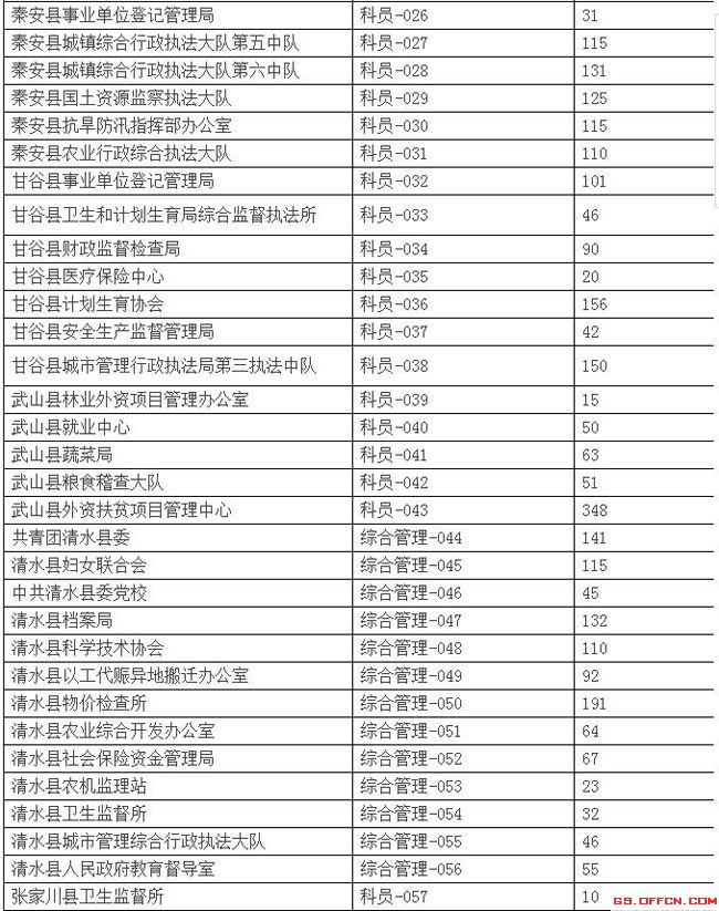 2017年甘肅公務員考試報名結束:天水公務員報名數(shù)據(jù)分析