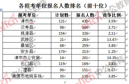 為幫助廣大考生更清晰的了解報(bào)名情況,中公教育整理了婁底市各招考單位的報(bào)名人數(shù)排名以及競爭比例排名,供廣大考生參考: