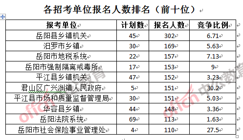 二、岳陽公務(wù)員報名人數(shù):各招考單位分析