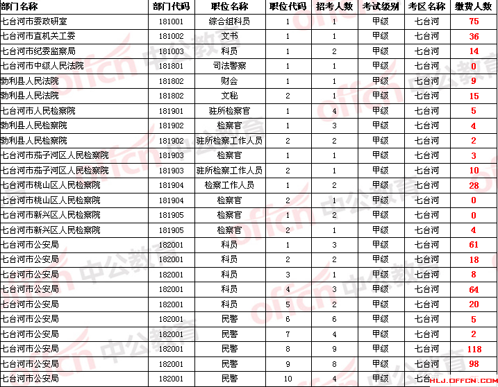2014年黑龍江公務(wù)員七臺河公務(wù)員考試繳費人數(shù)統(tǒng)計表[5月18日]