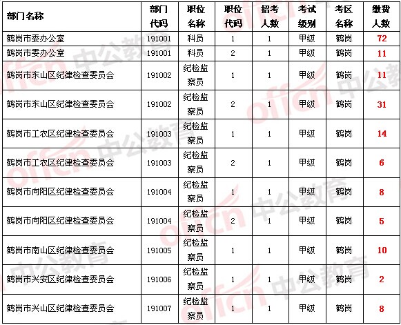 中公網(wǎng)校為參加2014年黑龍江省公務(wù)員考試的考生整理鶴崗地區(qū)截止至5月18日上午10點(diǎn)的部分繳費(fèi)人數(shù),并且在更新中。。。由于報(bào)名網(wǎng)站報(bào)名情況每30分鐘統(tǒng)計(jì)一次,數(shù)據(jù)可能會(huì)有細(xì)微差異,所有數(shù)據(jù)僅供大家參考。