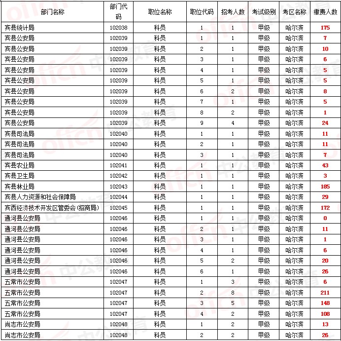 【哈爾濱】2014年黑龍江省公務(wù)員考試?yán)U費人數(shù)統(tǒng)計(5月19日)