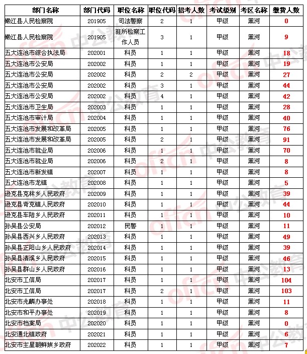 【黑河地區(qū)】2014年黑龍江省公務(wù)員考試報名人數(shù)統(tǒng)計